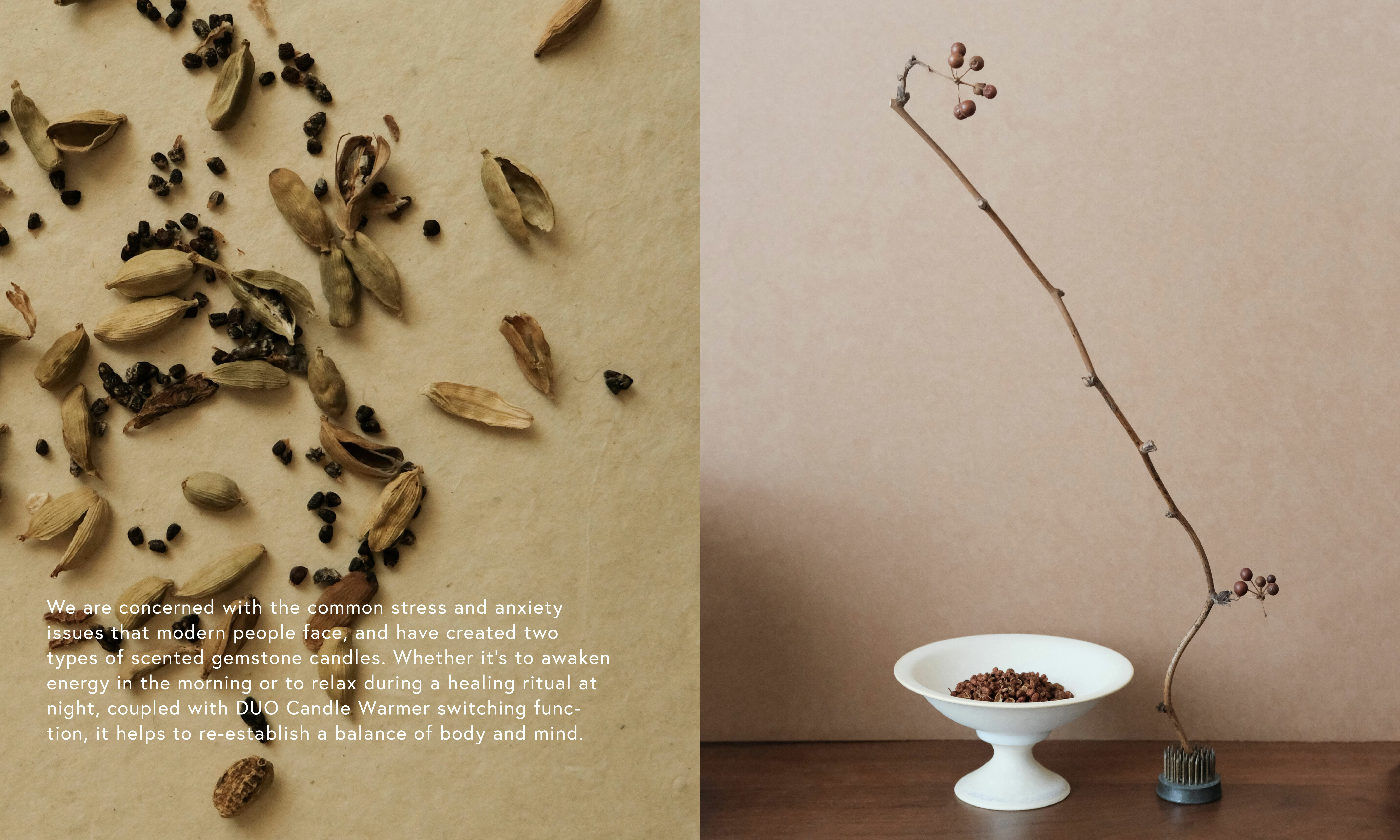 豆蔻為晨起帶來第一股激活能量,隨後伴隨烏木沈穩內斂的溫和氣息到來,釋放黃鐵礦磁場,重新喚醒經過一夜休眠的身心。根於大地的琥珀與香草,彷彿來自土壤的養分,透過氣味的一呼一吸,與土地做內在直覺的連結,賦予一天的行動力與自信。