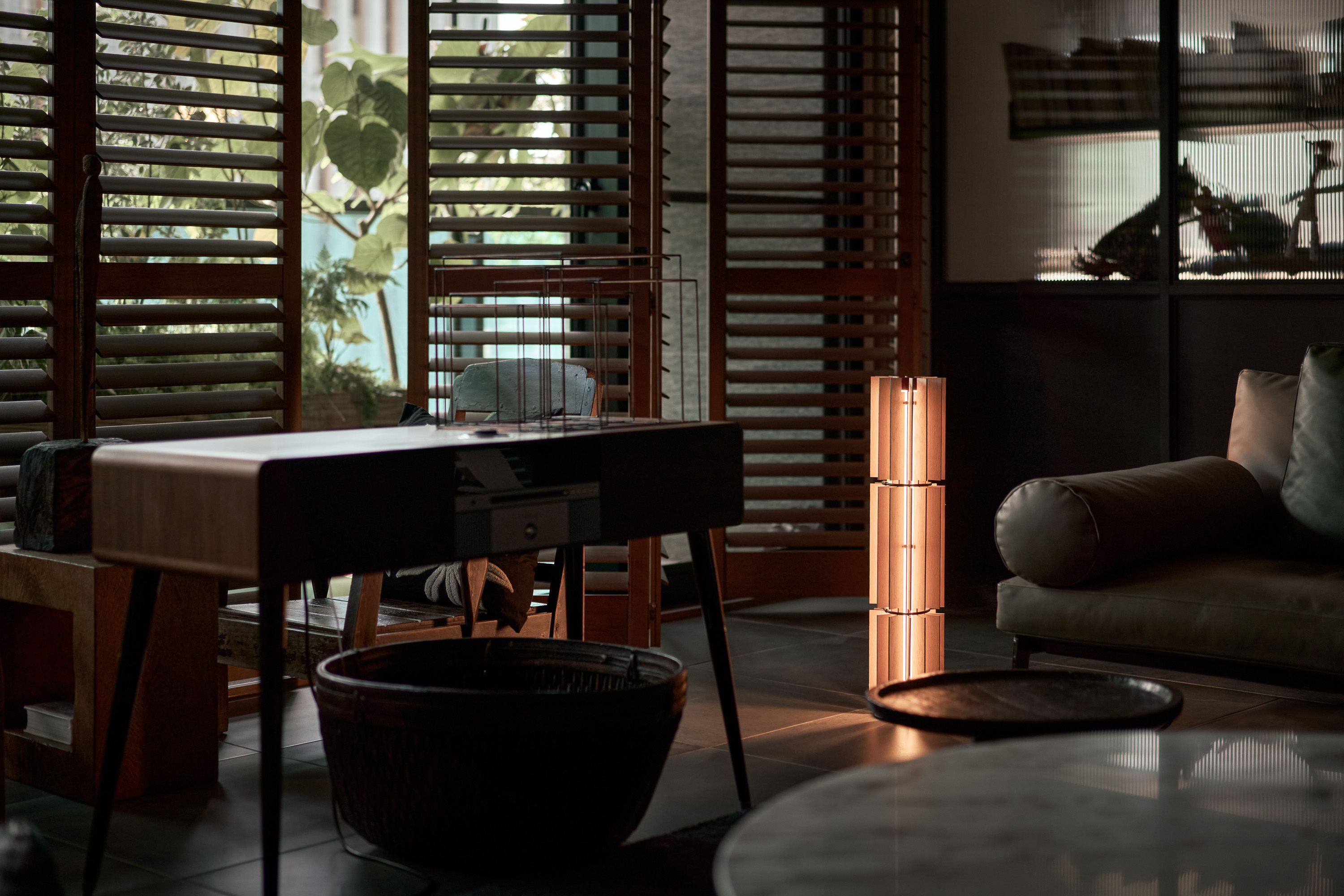 糖蔥地燈將東方幾何之美與現代簡約風格完美融合。地燈版以垂直陣列展現木片的溫潤質感,光源自底部垂直向上擴散,不僅創造出層次分明的空間感,還在地面上投射出優雅的光影效果,營造如同竹林般的幽靜氛圍。