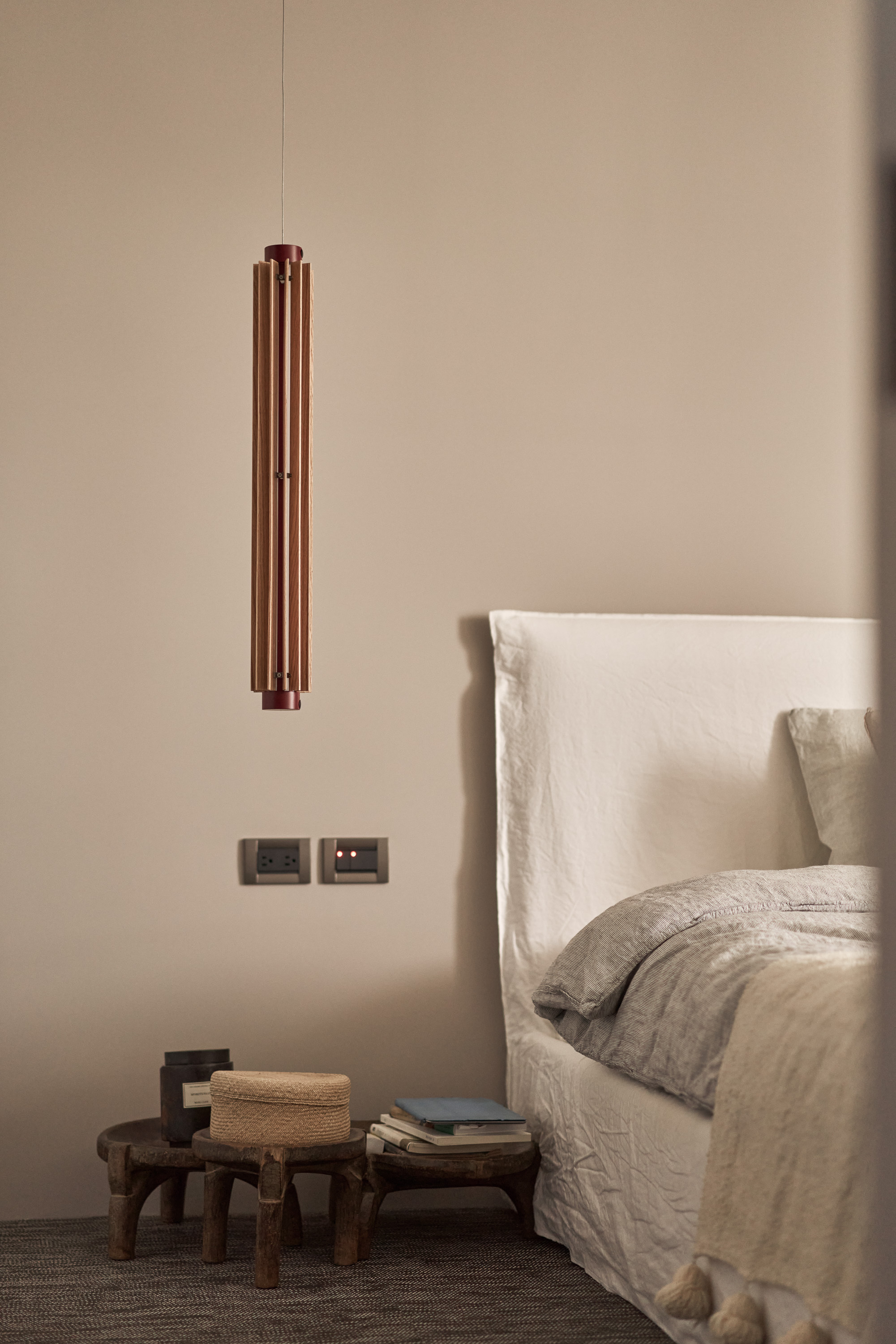 糖蔥燈結合了工業風與東方美學,以溫潤的實木片材營造層次感,內建智能遙控調光功能,讓使用者隨心控制亮度,無論是閱讀、放鬆或是營造氛圍,都能輕鬆掌握。