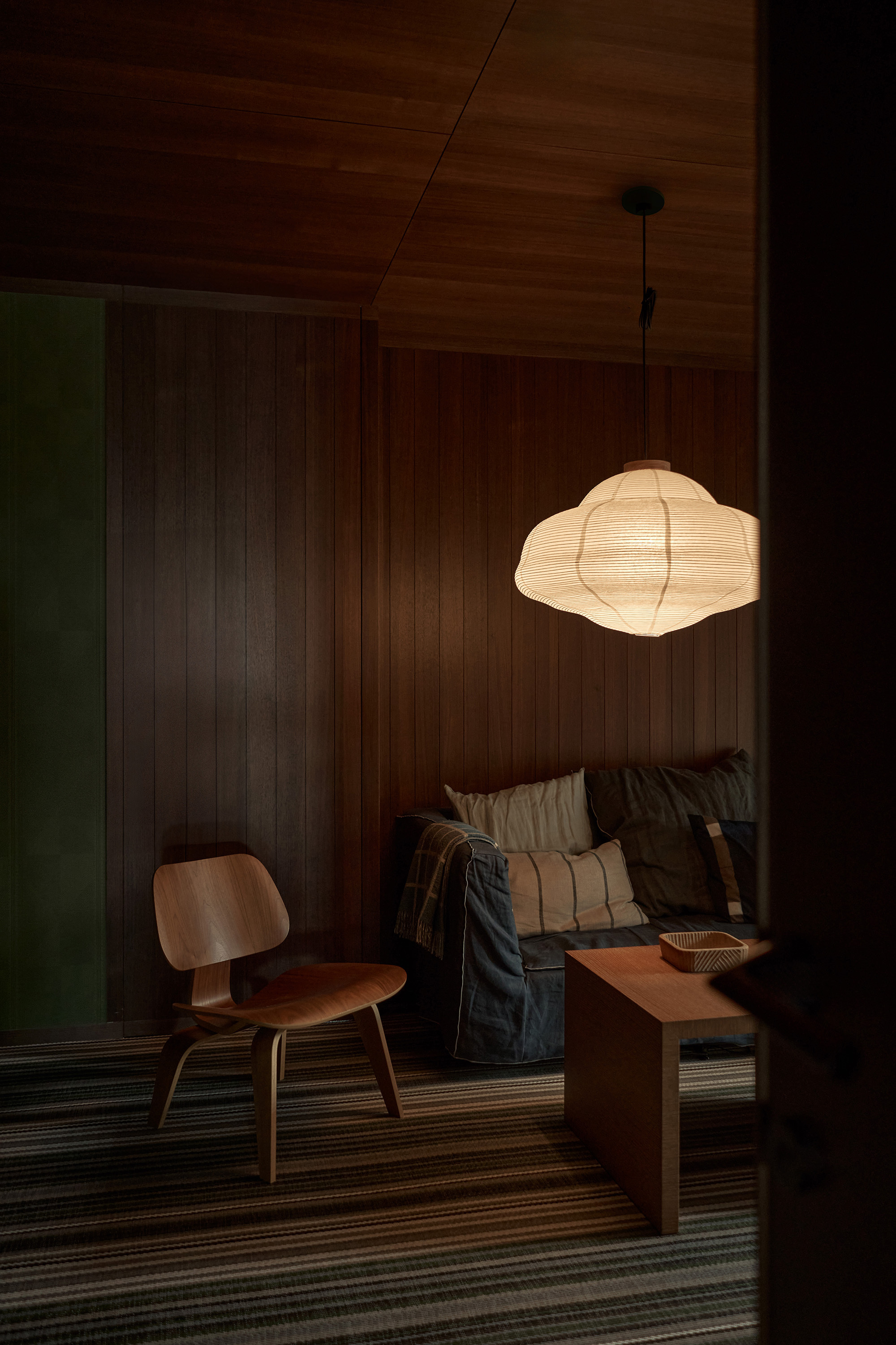 The Paper Milk Light, with its soft glow and lightweight design, perfectly complements the serene ambiance of Japandi (Scandinavian-Japanese Zen) interior styles. Its cloud-like organic lampshade brings a warm visual effect, adding softness and depth to the space. The delicate texture of the paper shade creates a natural rhythm when paired with minimalist wooden walls and furniture, highlighting the harmonious fusion of Japanese Zen and Scandinavian comfort. Whether as the centerpiece in a living room or as a light source above a dining table, the Paper Milk Light subtly infuses the space with tranquility and warmth, embodying the serene balance and refined lifestyle that Japandi design strives for.