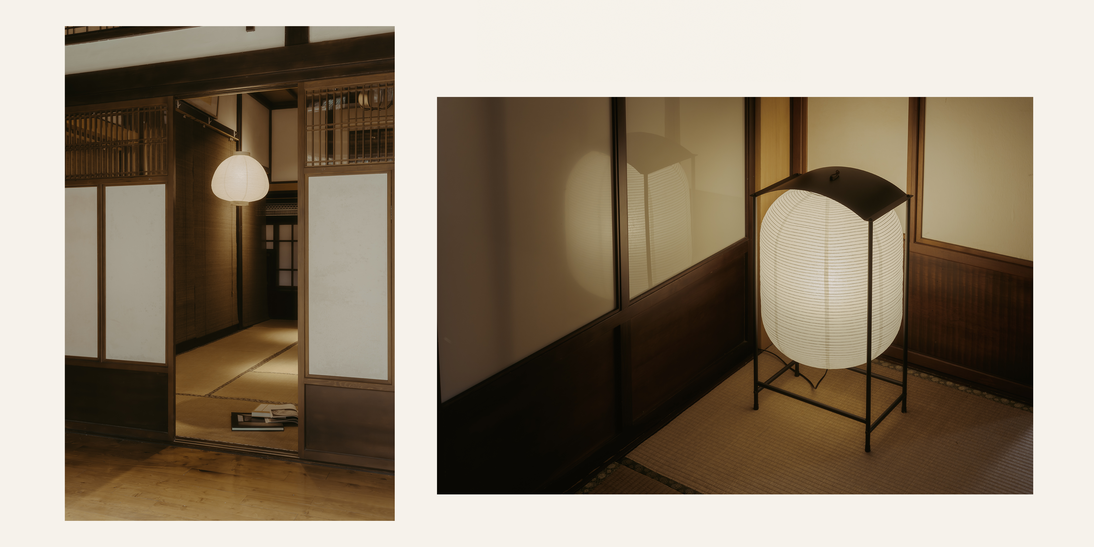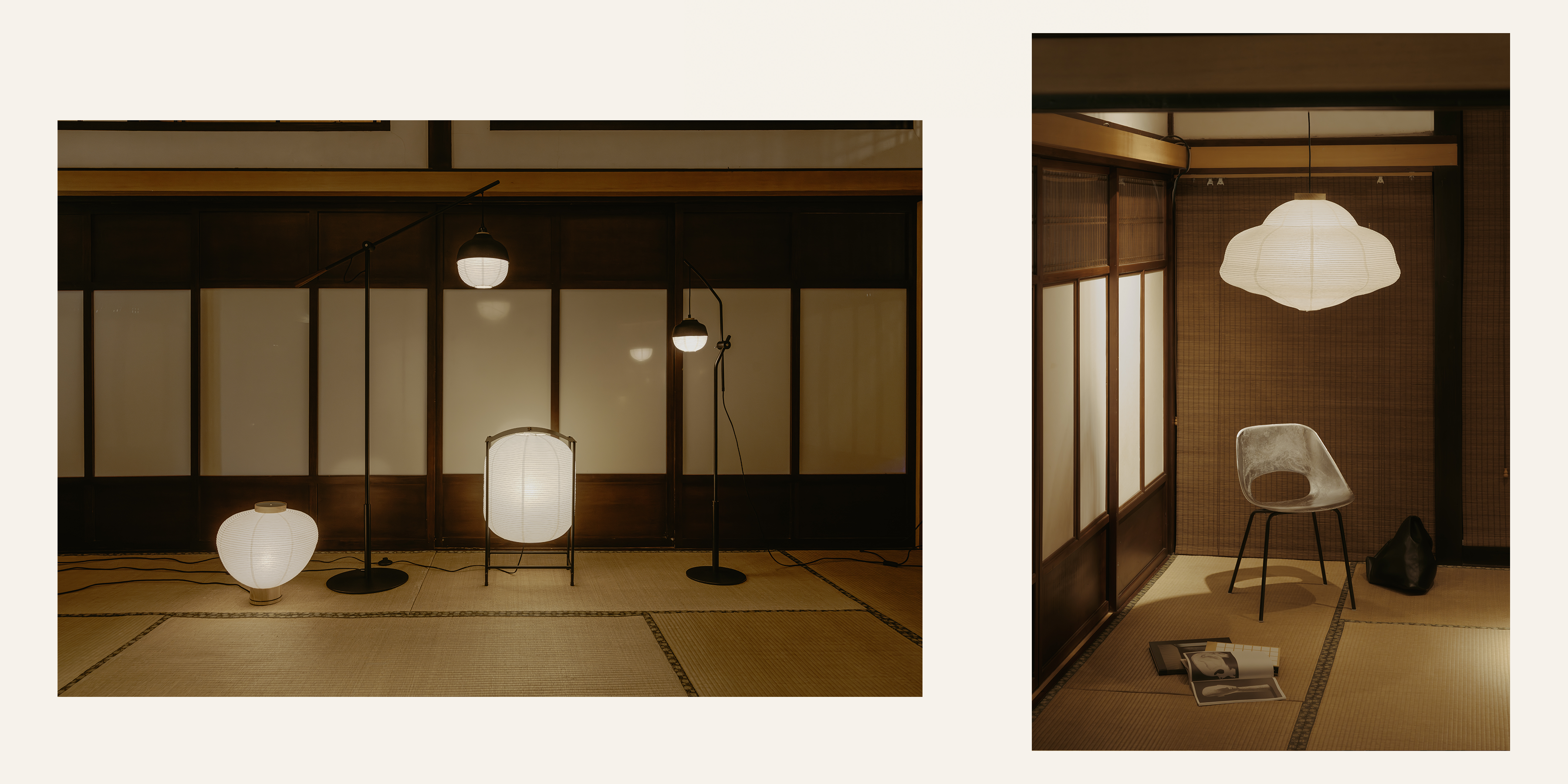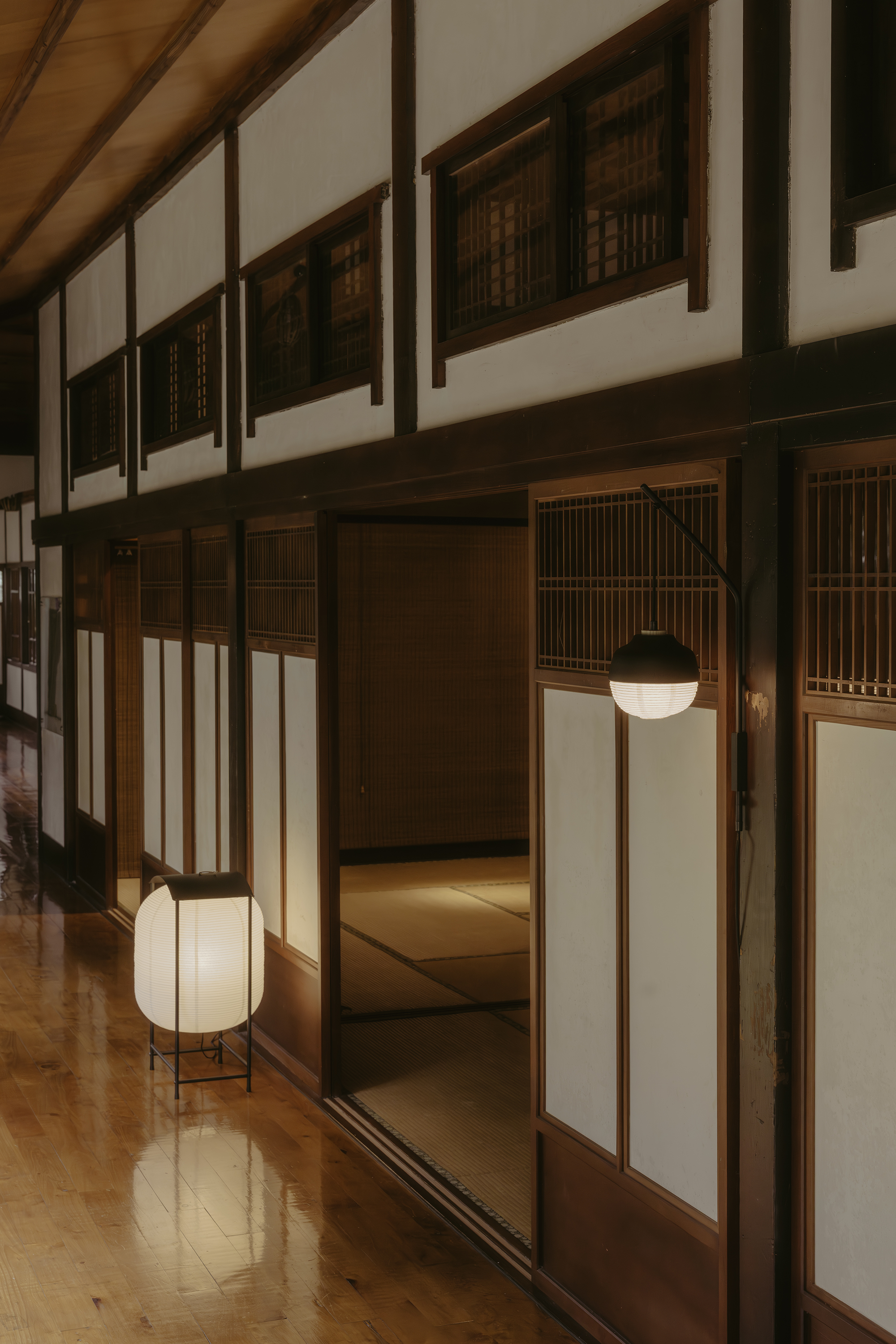 走進充滿時間痕跡的紀州庵,我們選擇柒木的經典作品——一盞東西系列、紙牛奶燈,讓它們與這座百年建築對話。