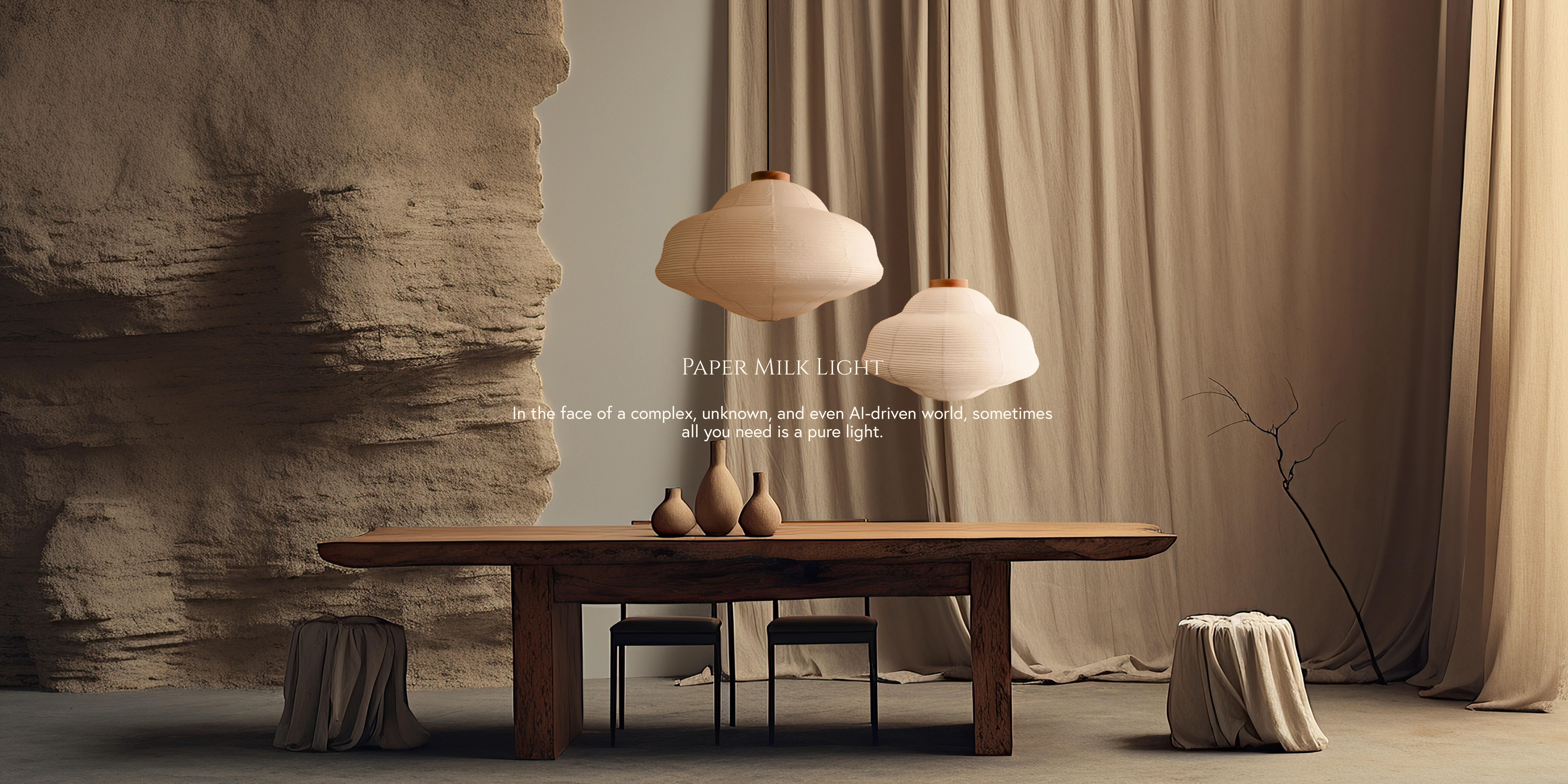 為了實現燈具文化的進化,我們提出將牛奶燈的玻璃溫潤感用紙來替代。這樣的變革不僅可以減少運送的費用,同時減輕了天花板的承重壓力,進一步增加了燈具的實用性。然而,同時也引發了一系列的挑戰:如何保留牛奶燈獨有的光澤質感?如何確保紙材料具備足夠的耐久性和抗損性?如何通過創新的材料結合與工藝運用,力求在保持牛奶燈獨特韻味的同時,實現燈具文化的現代化蛻變。
