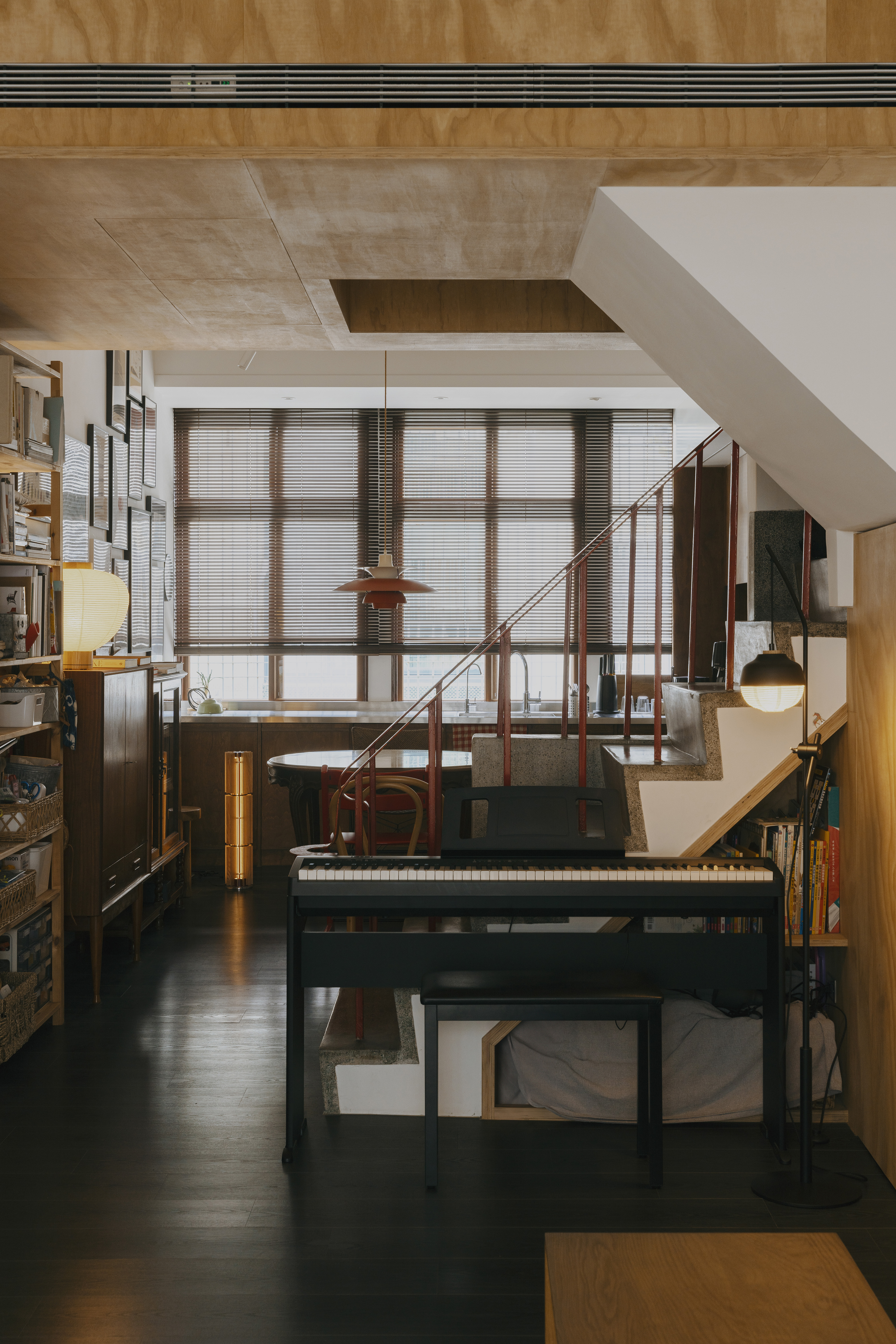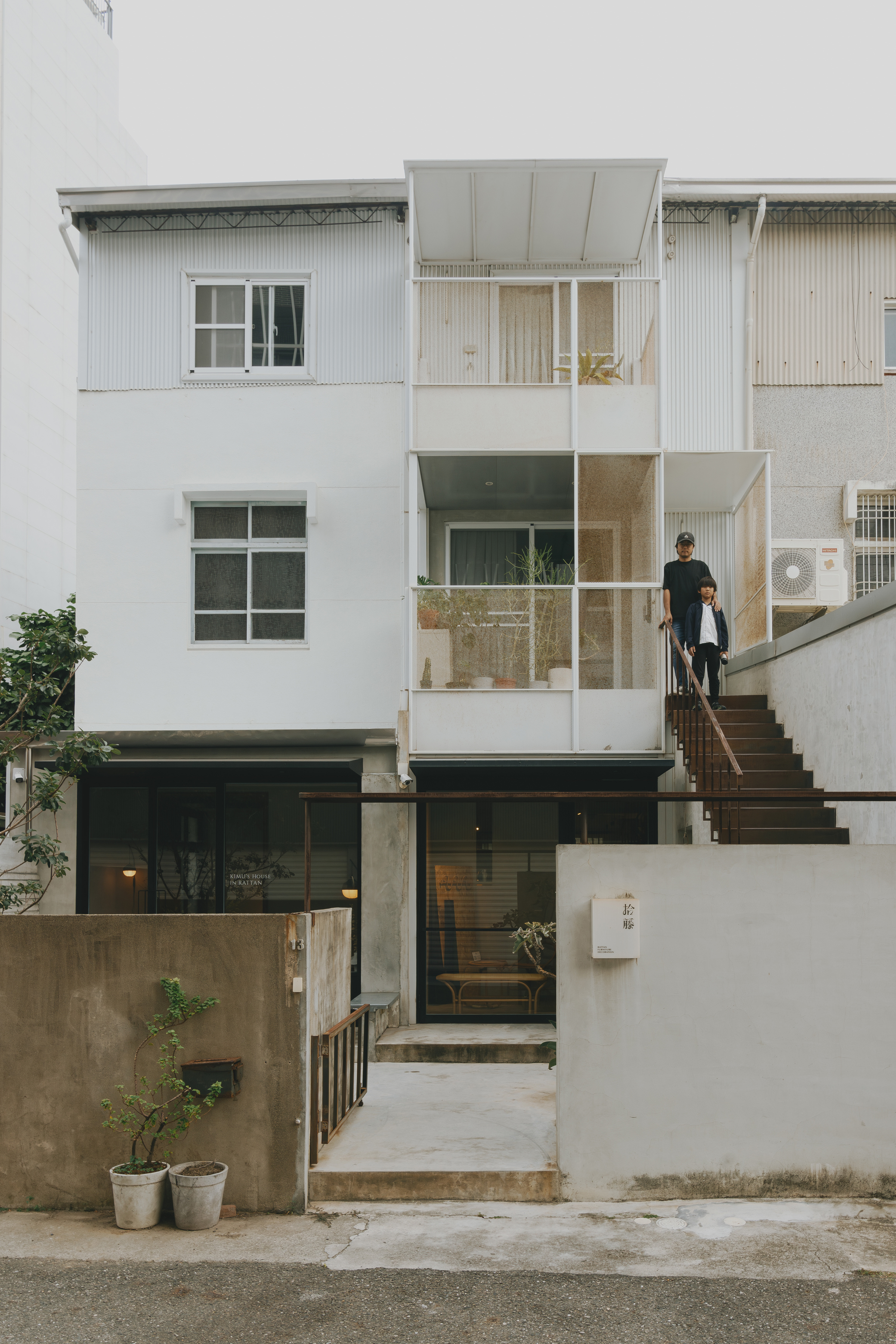 這棟房子承載著住家與工作的雙重功能。一樓作為店面,二、三樓則是住家。為了在繁忙的日常中找到工作與生活的平衡,Eden做了一個大膽的設計選擇:將原本通往二樓的室內樓梯改為戶外樓梯。「每天走上這十幾階室外樓梯,彷彿是一個轉換心情的儀式,從工作的緊湊切換到居家的放鬆。」