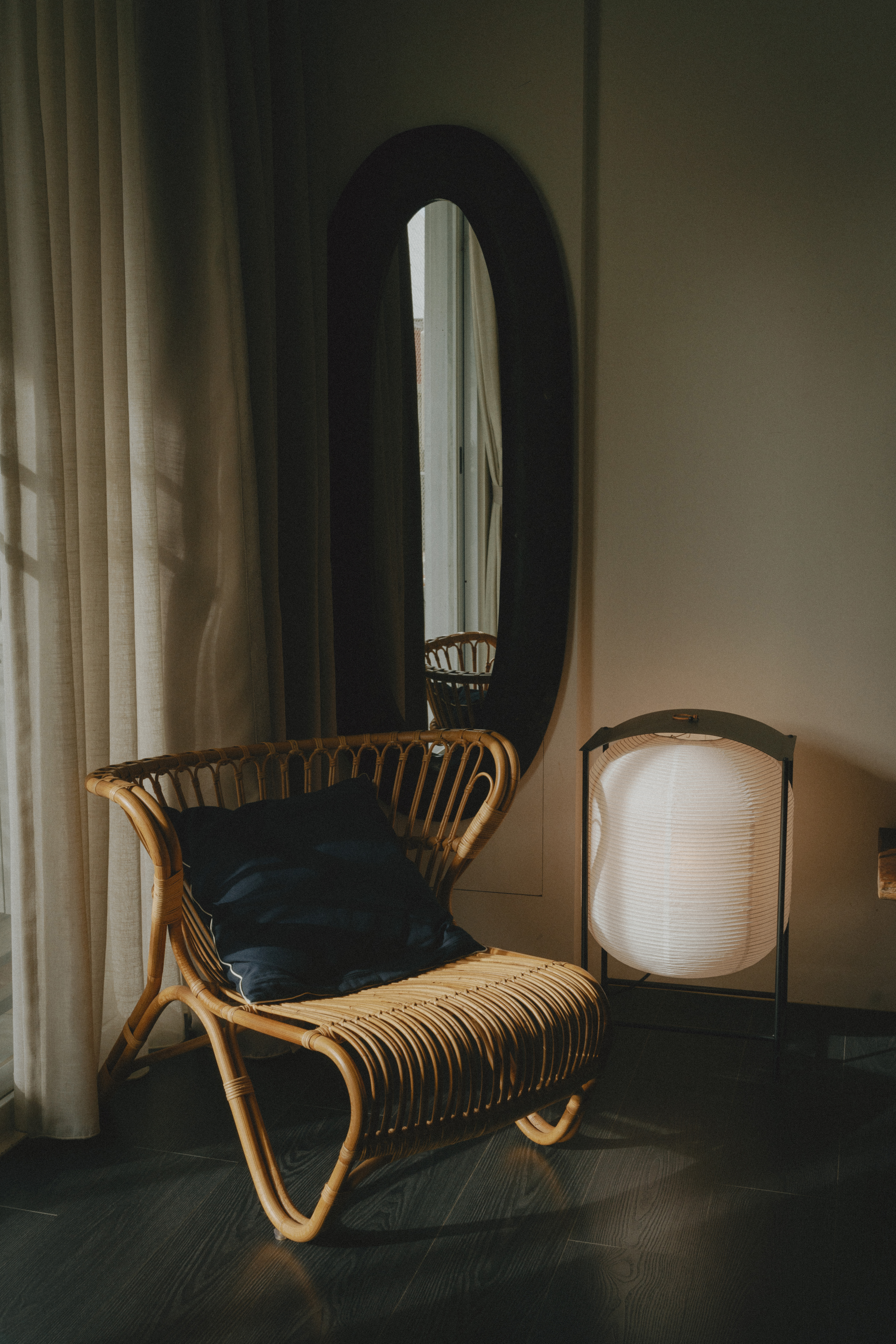 在Eden的家中有很多紅色與深棕色的元素,談及色彩搭配,他認為藤家具的自然色調非常百搭。「如果想加入紅色等稍微突出的顏色,我會選擇用軟性的素材來平衡,例如抱枕或地毯,這樣能讓空間氛圍更加協調。」除此之外,將躺椅與燈具配置於空間的角落,讓光線與家具相映成趣,也是營造靜謐氛圍最簡單的方式。