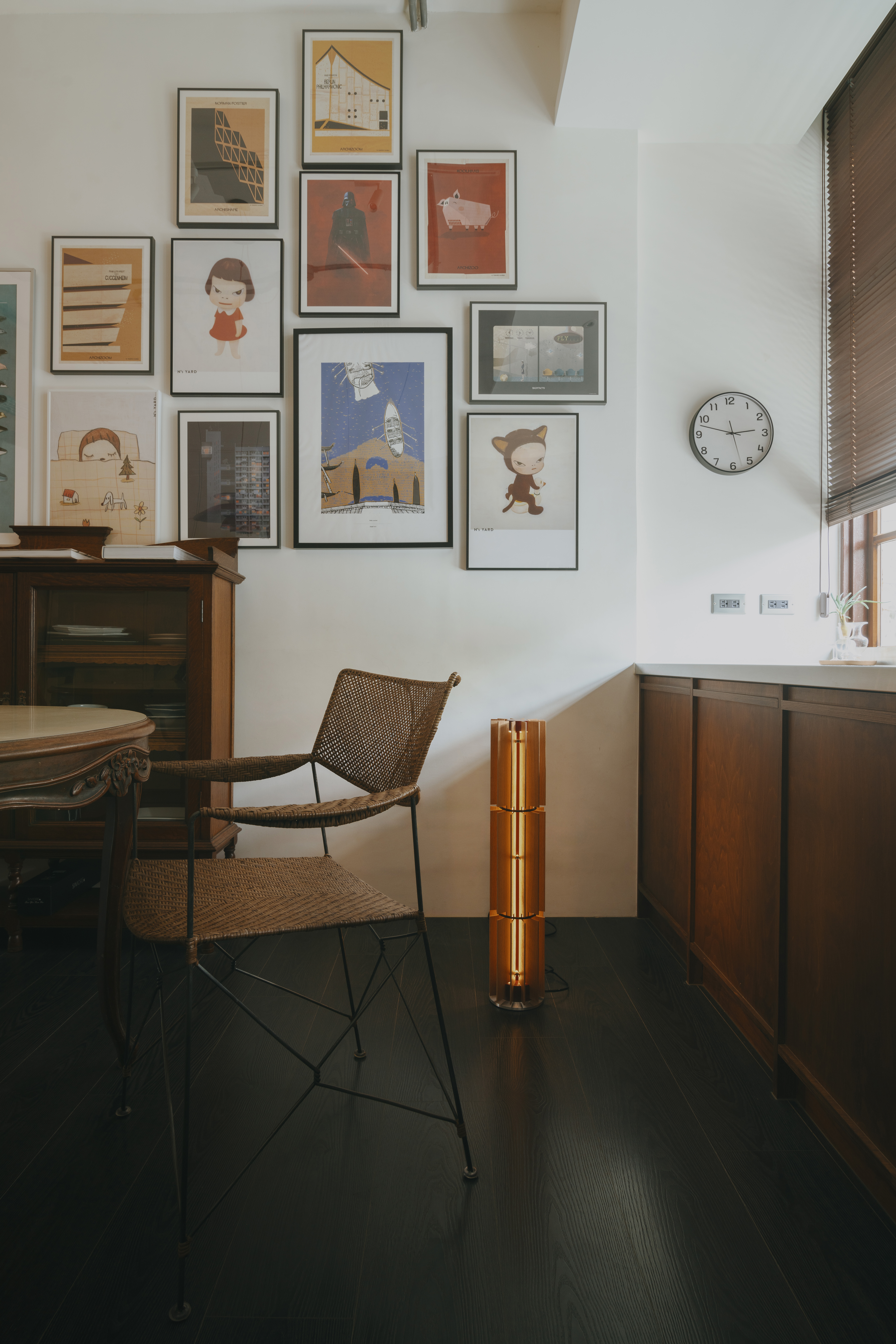 Eden 與太太皆來自設計背景,追求視覺上的極致完美本是他們養成的一部分,但回到台南生活後,他們逐漸學會欣賞那些帶點「瑕疵」的日常之美。Eden 分享了自己在家中拉電線的習慣,他透過鉤子靈活調整燈具的位置,讓空間能夠隨心變換。他認為:「設計不必過於完美,偶爾的瑕疵反而能讓空間充滿故事感。」
