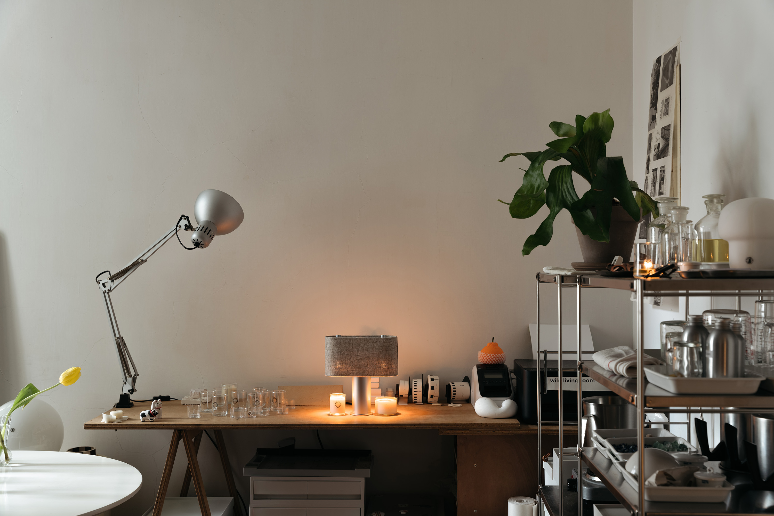 MU也分享養蠟燭是需要花點心思的,不管是每次點燃的時間、燭芯的修剪等都會影響一顆蠟燭的狀態。「我有不少客人雖然還是用明火燒蠟燭,但會搭配融蠟燈來清理燭杯,對於忙碌的現代人其實是一個很便利又彈性的工具。」