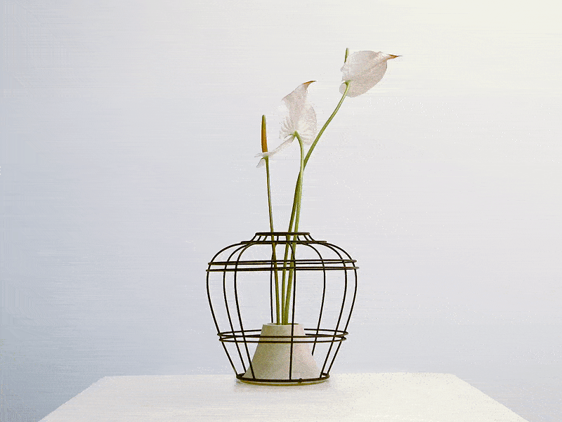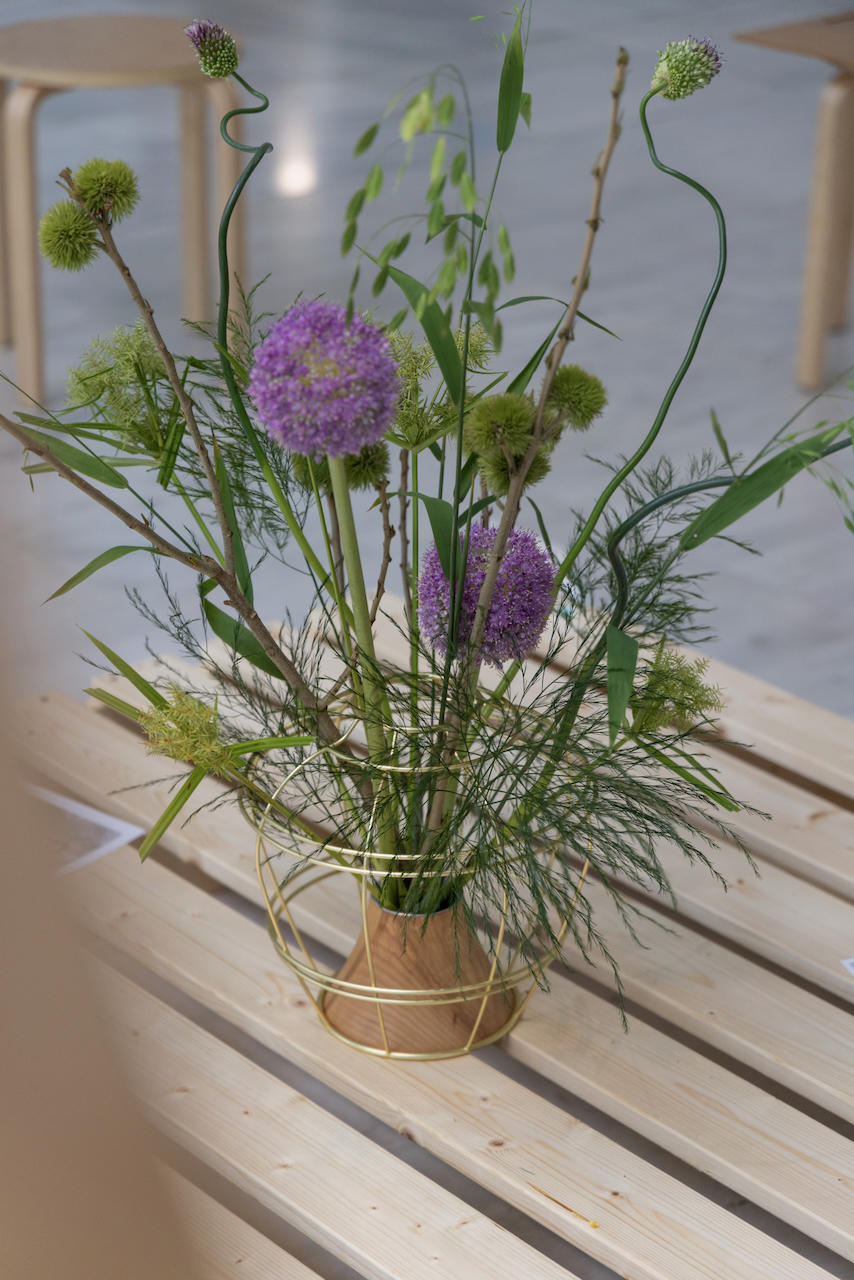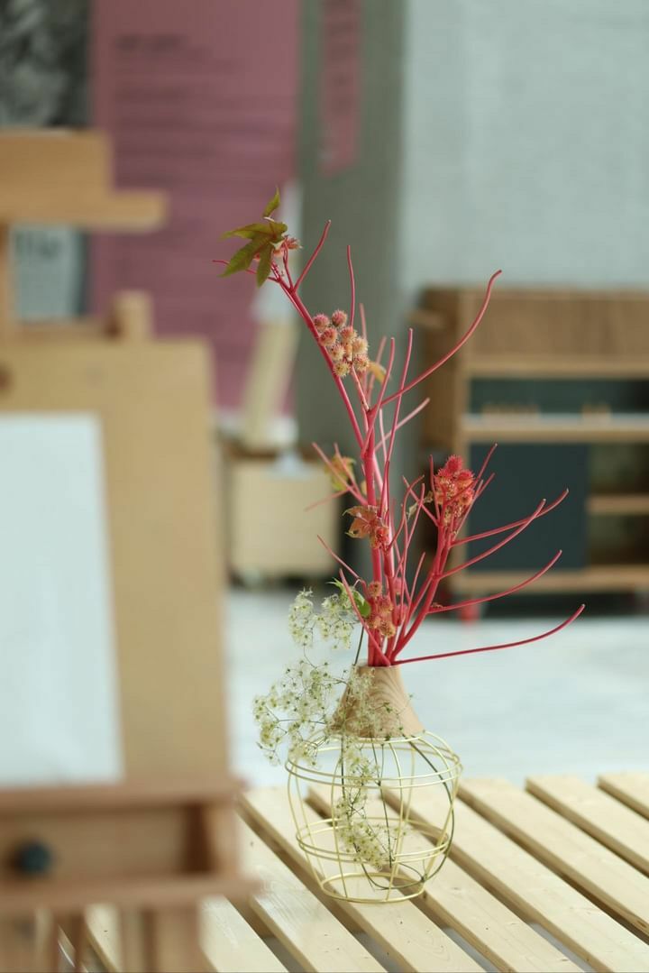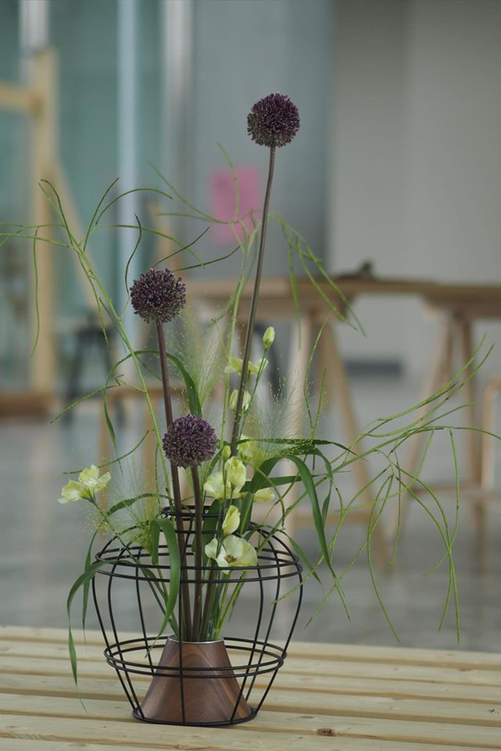 「強調花莖的線條和球狀的花與果實,彷彿風可以從中吹過的空間感。」