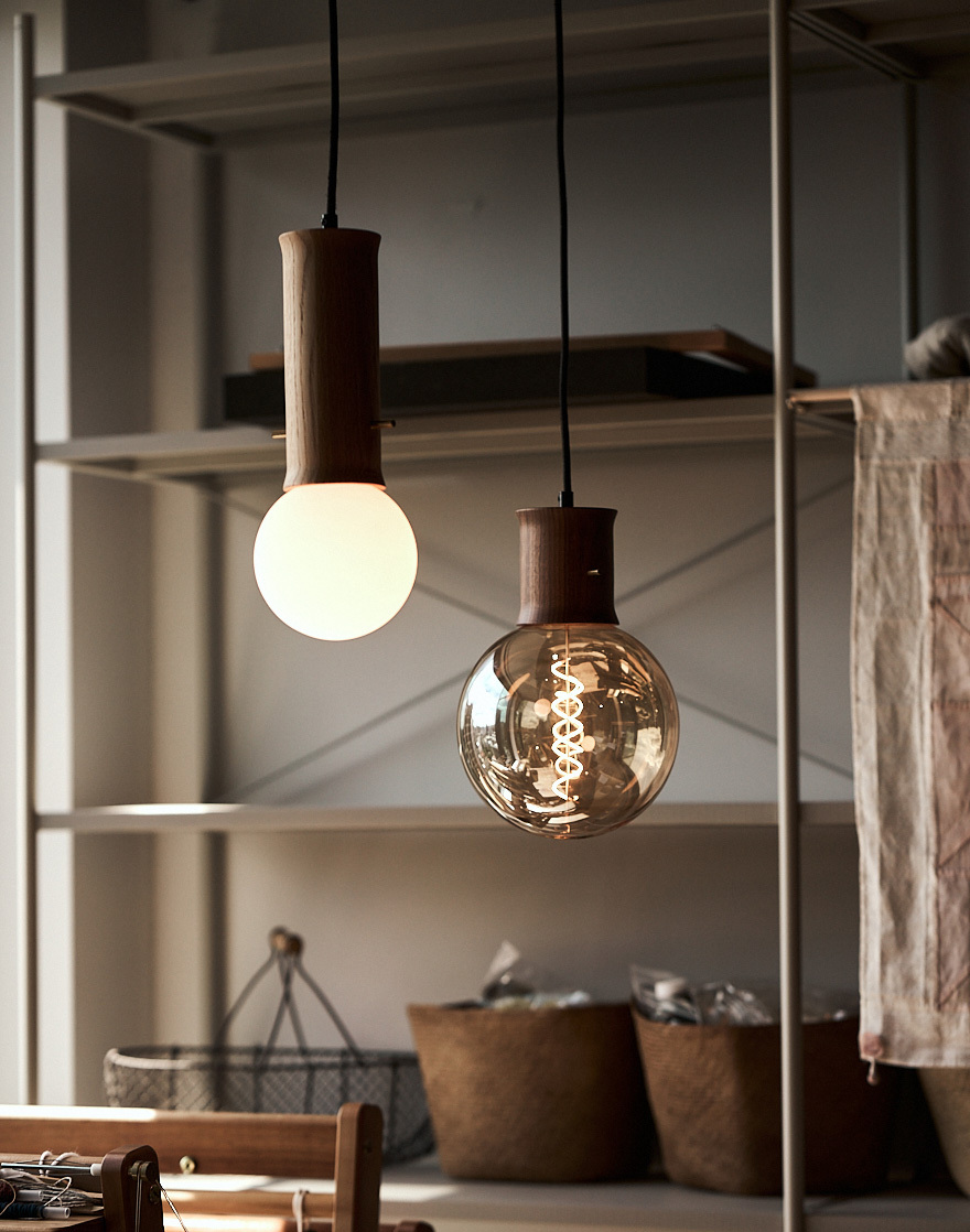 胡桃木版搭配英國Tala口吹玻璃燈泡,營造日式侘寂風格。
